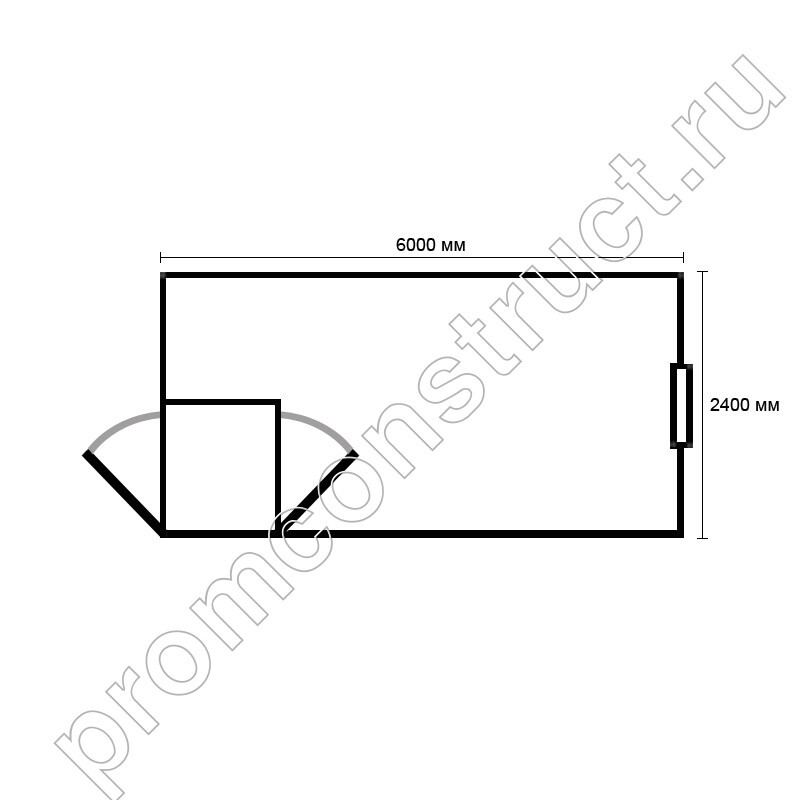 Схема: Строительная бытовка с тамбуром металлическая, вагончик, блок-контейнер БК-03 6000х2400х2500 мм (6х2.4х2.5 м)